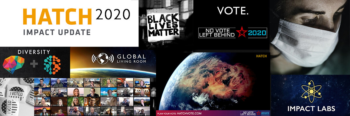 The IMPACT LABS were created to bring together a global community to co-create solutions for major systemic problems in humanity at a time when solutions are most needed. HATCH has developed a prototype framework to leverage innovation and creative problem-solving methodologies while building momentum around current critical focus areas. For the first cohort, HATCHconvened 130 Impacters (41 NextGen) from 12 countries, 34 states across the country, forming 18 teams over 7 weeks, on 4 topics (Equity, Education, Environment, and Mobilize the Vote). Incredible Projects.> NO VOTE LEFT BEHIND